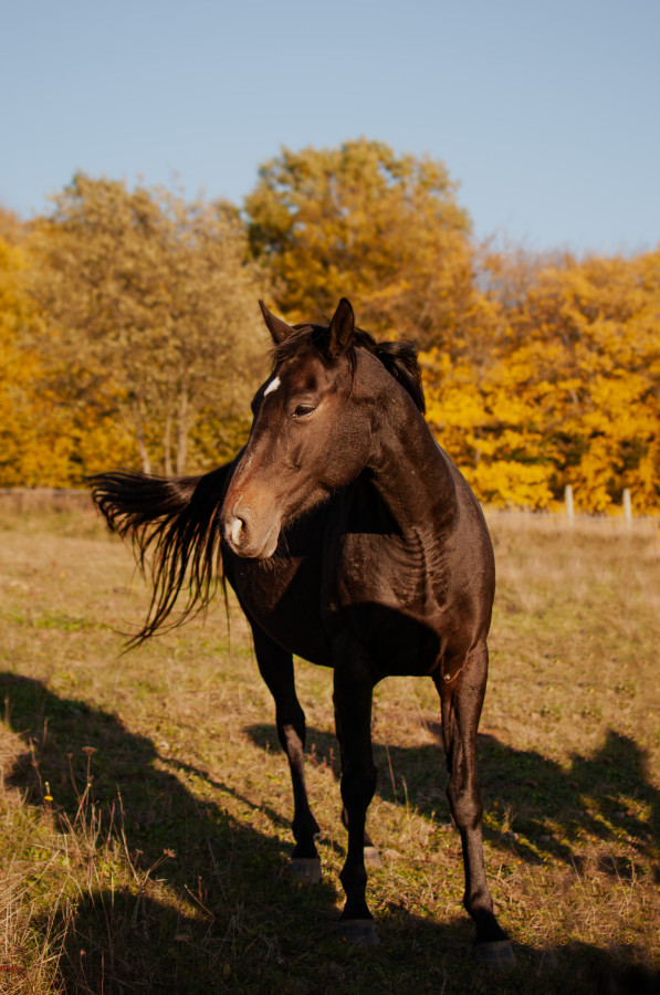 Kareta to przepiękna, elegancka klacz rasy małopolskiej, pochodząca spod Lubelskiego. U mnie klacz przebywa na wolnym wybiegu przez całą dobę ( nie widziałam boksu od 3lat)