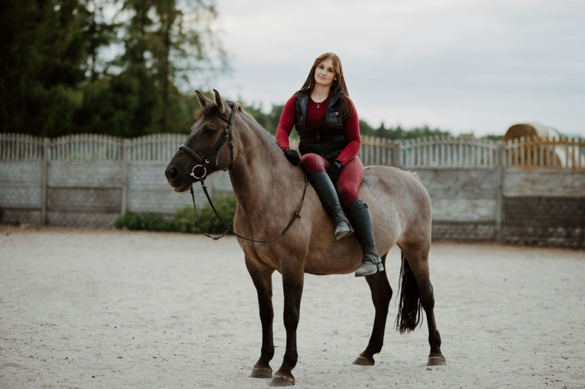 Na sprzedaż jedenastoletnią klaczka po ojcu kn i matce kuc. Duża bo ma 151 cm wzrostu i spokojnie nada się dla dorosłego. Klacz mega przyjazna, lubi kontakt z człowiekiem, uwielbia czesanie, głaskanie i przytulanie. Nie kopie, nie gryzie, nie ponosi, nie bryka, nie jest wredna. Mięciutka w pysku, miękkie i wygodne chody. Chodzi jako czołowa i w zastępie, pracuje na drągach, skacze małe przeszkody. U nas pracuje na lonży, na placu i chodzi w tereny, konik wszechstronny. Chętnie wchodzi do wody. Co roku pracuje pod dziećmi na półkoloniach. 100 % zdrowa, nigdy niekontuzjowana, dobrze wykorzystuje paszę. Niestety wyłazi z pastwiska jeżeli nie jest podłączony prąd. Nada się do szkółki i jako koń rodzinny - dla dzieci. Sprzedaż z powodu redukcji stada. Kontakt najlepiej telefoniczny na nr 605 964 785. Mam kilka filmików z tego lata, mogę przesłać na maila. Pierwsze zdjęcie z dzisiaj.