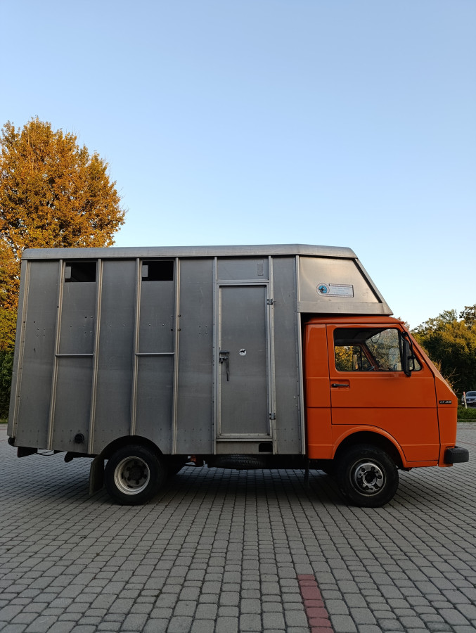 Posiadam od roku, wprowadzony koniowòz w idealnym stanie, przyjechał z przebiegiem 60000km teraz nie robił 65 taki auto z niezniszczalną aluminiową zabudową, autko posiada klocki hamulcowe oryginalne i nie zużyte.wszytko jest od nowości. Zabudowa nie mam pojęcia kiedy domontowana. Trap podnosi się lekko i posiada oryginalną dywanową wykładzinę anty dźwiękową od kopyt , Konie dwie sztuki, stoją ukośnie przodem do kierunku jazdy lub odwrotnie, można przestawić przegrody więcej na tel. Auto nie demon prędkości ale dostojny i jedyny, silnik benzyna więc nie ma problemu z paleniem i nie tak strasznie pali, gazu nie zakładałem,da się jeździć spokojnie.