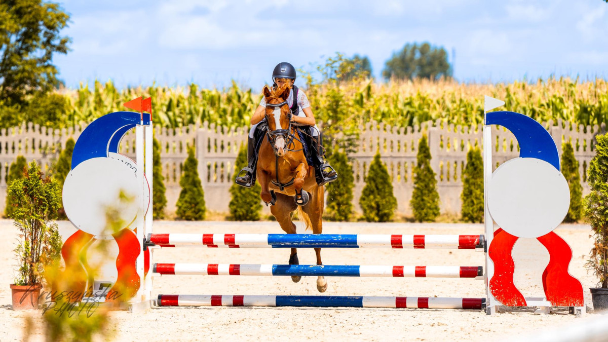 W stałym treningu, zawsze po drugiej stronie przeszkody, w skoki oddaję całe swoje serce. Bezpieczny w jeździe, idealny dla dziecka zaczynającego przygodę ze sportem oraz takiego które chce się rozwijać dalej. Nie ma problemu w wchodzeniu do przyczepy czy koniowozu. Regularnie szczepiony. Jest kuty na 4 kopyta. Płotki, deski, baseny, różne straszaki nie robią na nim wrażenia. W teren potrafi chodzić sam jak z innymi końmi.