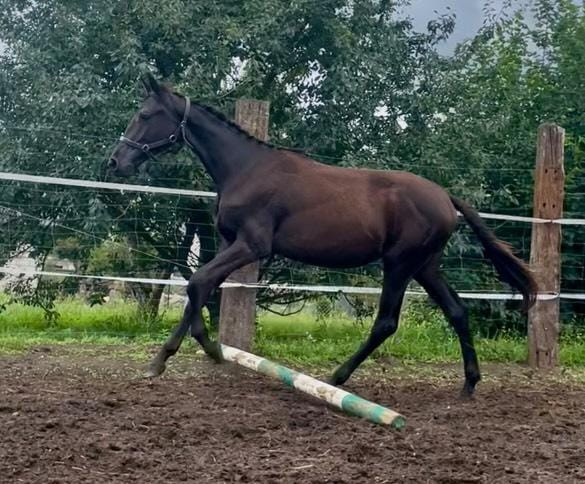 Młoda 1.5 roczna klacz , rasa wielkopolska , ciemnogniada , obecnie ma 160 cm ( docelowo 170cm ) , urodzona 2024 roku , zdrowa , grzeczna przy zabiegach pielęgnacyjnych jak i kowalu , spokojna podczas transportu , surowa z racji wieku , towarzyska . Z matki po Santiago / Imbir/ Biskwit . Ojcem jest Rammstein T po Diamant De Semilly/ Cornet Obolensky/ Le Tot De Semilly.