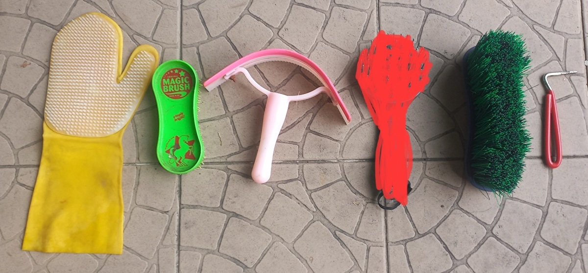 1. żółta rękawica do mycia konia, stan bd cena 10 zł