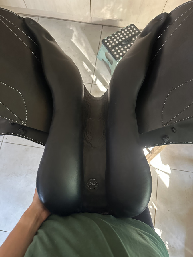Siodło zostało zakupione w grudniu 2023 roku. Przez kontuzje i wyjazd konia siodło nie było praktycznie użytkowane mniej więcej pół roku jazdy na jednym koniu. Siodło jest w stanie idealnym i jest bardzo wygodne. Rozmiar łęku 33, siedzisko 17”, panel wełniany plus dobicie pod zamkami, skora cielęca. W siodle jest możliwość zmieniania na rzep bloków.