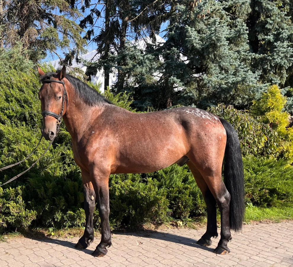 Armani. 3,5 letni walach tarantowaty. Pracuje w trzech chodach i na drążkach. Spokojny pod siodłem i w obejściu. Dobrze ujeżdżony spokojny ale jezdny walach z potencjałem do ambitnej rekreacji. Zdrowy bez narowów pod opieką kowala i weterynarza 25 tys do negocjacji.