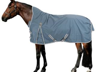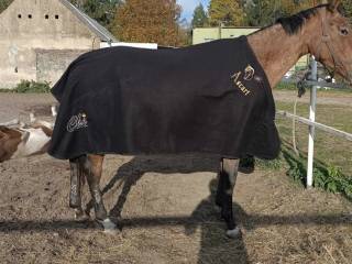 derka Thermo Master Jesco, r. 155 cm, 200 g, niebieska, z polarem, padokowa, przedłużana szyja, jak nowa z wadą