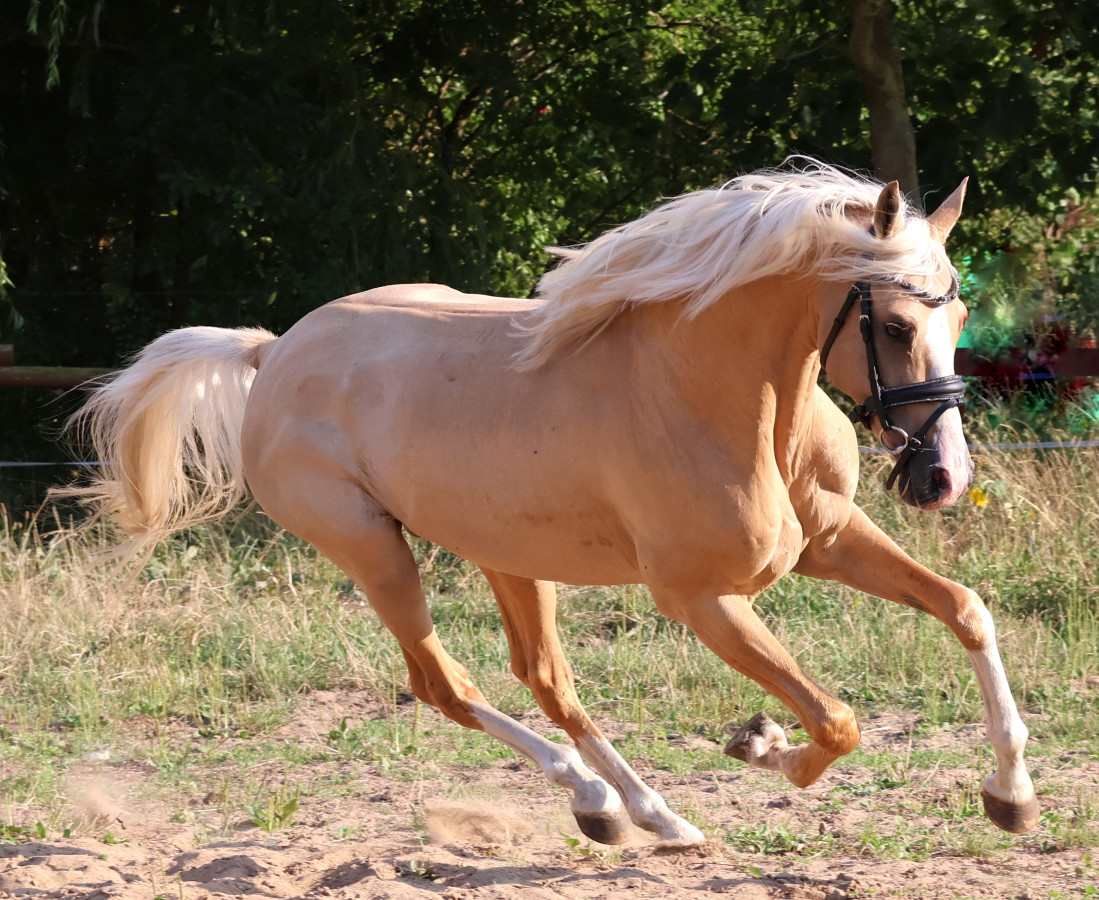 FS Champion De Luxe był imponującym zwycięzcą w 2000 roku w Aachen w kategorii kucyków wierzchowych, zwycięzcą w mityngach NRW w 2001 i 2002 roku oraz w mistrzostwach Rheinisches. Brał udział w zawodach i wygrał klasy ujeżdżenia poziomu A i L oraz był Bundeschampionem kucyków w 2001 i 2002 roku. Wygrał test wydajności ogierów w Neustadt-Dosse z czterema doskonałymi wynikami na dziesięć! Na berlińskim Bundessiegerhengst w 2003 roku wygrał klasy ujeżdżenia i wszechstronności, co skłoniło Hansa Heinricha Stiena do napisania w prasie, że Champion de Luxe jest „wyjątkowym, doskonałym zwierzęciem”.