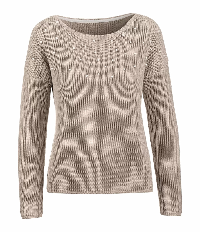 Super miły, miękki i wygodnie skrojony sweter z dzianiny z wysokiej jakości perłowym haftem na dekolcie. Dyskretny haft Felix Bühler na dole. Materiał: 53% bawełna, 40% wiskoza, 7% nylon.