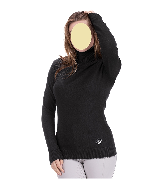 Miękki sweterek z golfem o melanżowym wyglądzie. Subtelny haft z logo nad paskiem, golfem oraz mankietami i mankietami wykończonymi ściągaczem. Kontrastowa kolorowa lamówka w pasie. 80% wiskoza, 20% nylon
