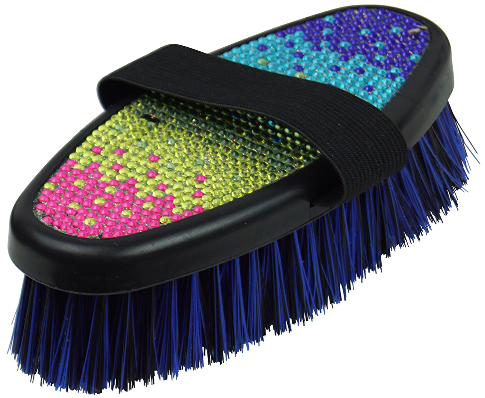 szczotka do sierści, której górna część ozdobiona została kolorowymi kryształkami