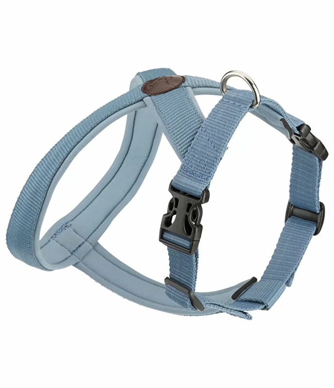 Łatwe w pielęgnacji szelki dla psa do codziennego użytku ze skrzyżowanymi paskami na plecach dla lepszego rozłożenia nacisku i zmniejszenia nacisku na klatkę piersiową. Miękko wyściełane kauczukiem chloroprenowym dla wysokiego komfortu noszenia. Obwód tułowia indywidualnie regulowany w rozmiarze z obu stron. Z zatrzaskami po obu stronach do szybkiego ubierania i rozbierania.