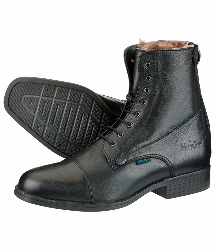 Botki zimowe Torino w wersji PRO posiadają również wodoodporną membranę oraz uszczelkę na tylnym zamku, która zapobiega przedostawaniu się śniegu. Dodatkowo wyjmowana wkładka ze skóry jagnięcej pokryta jest od spodu warstwą aluminium, która chroni przed zimnem. W niezmienionej wersji podstawowej, sznurowane botki wykonane są z włoskiej skóry licowej i wyłożone od wewnątrz prawdziwą skórą jagnięcą. Wyprodukowano w Portugalii.