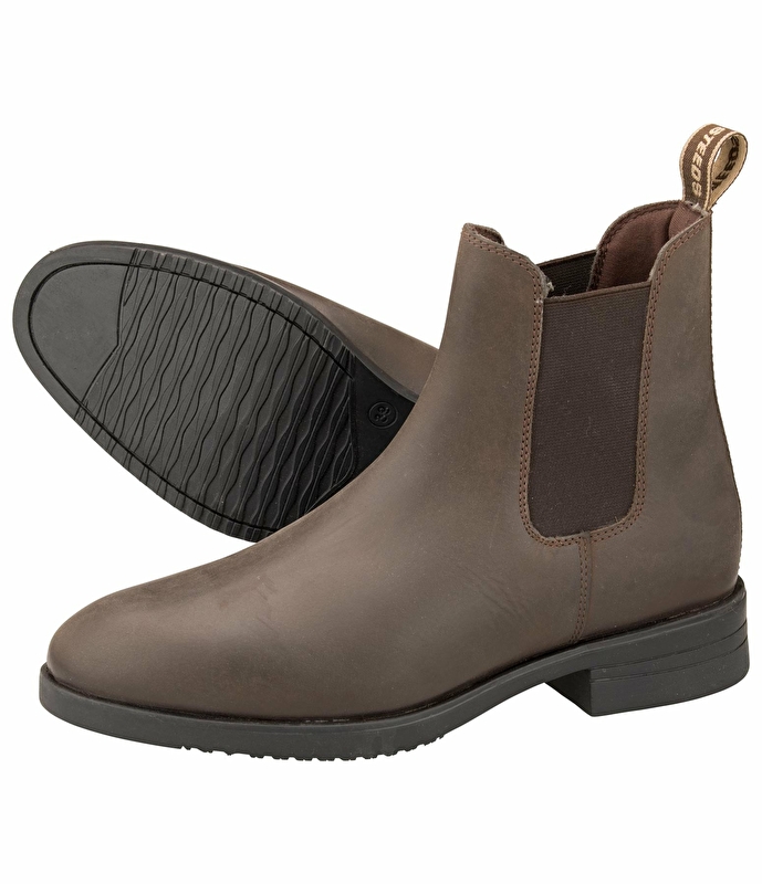 Sztyblety ze skóry wołowej, które mają teraz lepsze dopasowanie i elegancki krój - slim fit. Elastyczne wstawki po obu stronach, w połączeniu z mocną pętlą do zakładania, umożliwiają szybkie zakładanie i zdejmowanie. Antypoślizgowa gumowa podeszwa zewnętrzna ze wzmacnianą piętą, podszewka z tkaniny (100% poliester). Buty w kolorze ciemnego brązu.