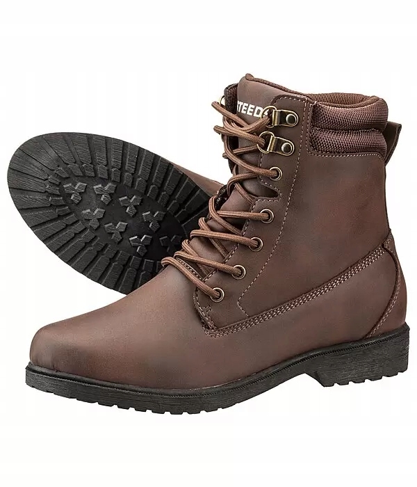 Stabilne, jeździeckie buty wykonane z mocnego materiału wierzchniego (PU). Oddychająca podszewka z siatki. Podeszwa wykonana z gumy. Dalsze szczegóły: szybkie sznurowanie, wyściółka kostki, zszywany język, który zapobiega wnikaniu wody.