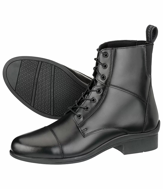 Sznurowane botki wykonane ze skóry bydlęcej ze zintegrowanymi elastycznymi wstawkami po obu stronach dla wysokiego komfortu noszenia. Teraz ze sportową podeszwą zewnętrzną i ulepszonym dopasowaniem. Nowo zaprojektowana gumowa podeszwa zewnętrzna z odpowiednią do jazdy piętą zapewnia niezbędne wsparcie. Podszewka tekstylna (100% poliester).