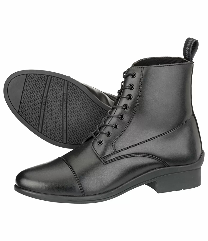 Sznurowane botki wykonane z miękkiej cholewki z materiału SYLKA (sztuczna skóra o wysokiej sprężystości i łatwości w czyszczeniu). Teraz ze sportową podeszwą zewnętrzną i ulepszonym dopasowaniem. Tekstylna wyściółka (100% poliester), gumowa podeszwa zewnętrzna z piętą odpowiednią do jazdy konnej.