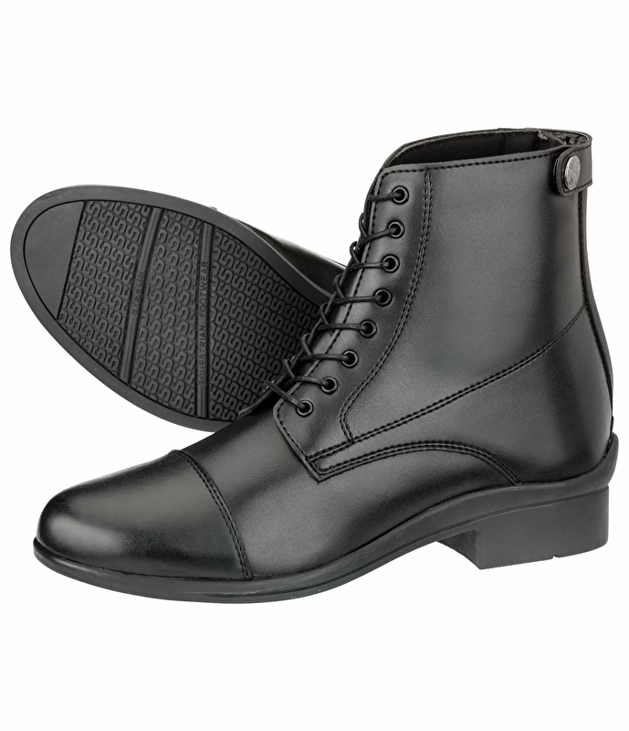 Sznurowane botki wykonane z miękkiego materiału skóropodobnego SYLKA (wysokowydajna syntetyczna skóra, która jest łatwa do czyszczenia) z zamkiem z tyłu ułatwiającym zakładanie i zdejmowanie. Teraz z ulepszonym dopasowaniem. Podszewka wykonana z tkaniny tekstylnej (100% poliester), gumowa podeszwa zewnętrzna z piętą przystosowana do jazdy.