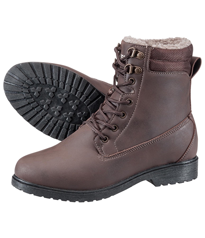 Solidny but zimowy ze sznurowadłami, wykonany z wytrzymałego materiału wierzchniego (poliuretan). Przytulna wyściółka wewnętrzna z pluszowego polaru utrzymuje stopy w cieple zimą, wszyty z boku język zapobiega przedostawaniu się śniegu. Przyczepny profil gumowej podeszwy zapewnia niezbędną przyczepność na śliskich powierzchniach, takich jak śnieg, lód czy błoto.