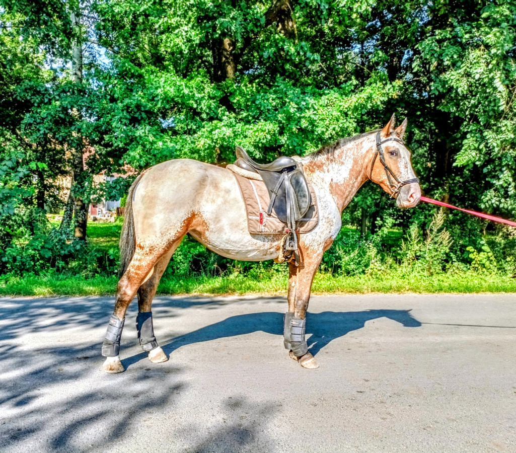 Sprzedam tarantowatą klacz, typ szlachetny, w maju skończyła 2 lata. Posiada paszport, pełne pochodzenie, po ogierze HUTOR. Klacz bardzo spokojna, bezproblemowa przy zabiegach pielęgnacyjnych i codziennej obsłudze. Podaje wszystkie nogi, zna pracę na 2 lonżach, czaprak, pas, siodło, ze względu na wiek niezajeżdzona. Przyszłościowy koń rodzinny. Posiadam więcej tarantowatych koni. Więcej info. tel!