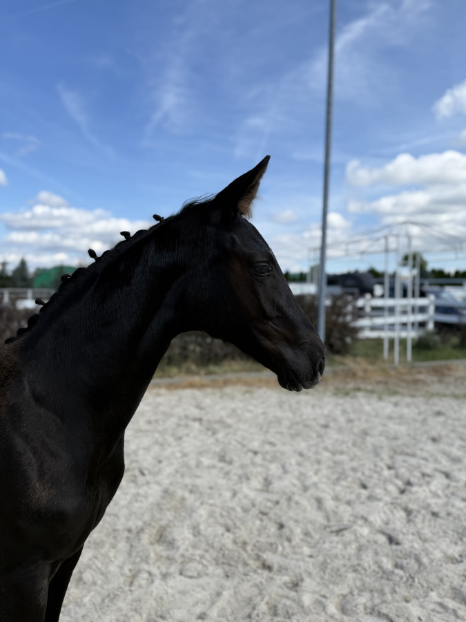 Źrebak jest bardzo kontaktowy i lubi kontakt z człowiekiem. Przyzwyczajony do czyszczenia, kąpania, werkowania kopyt oraz jazdy w przyczepie.