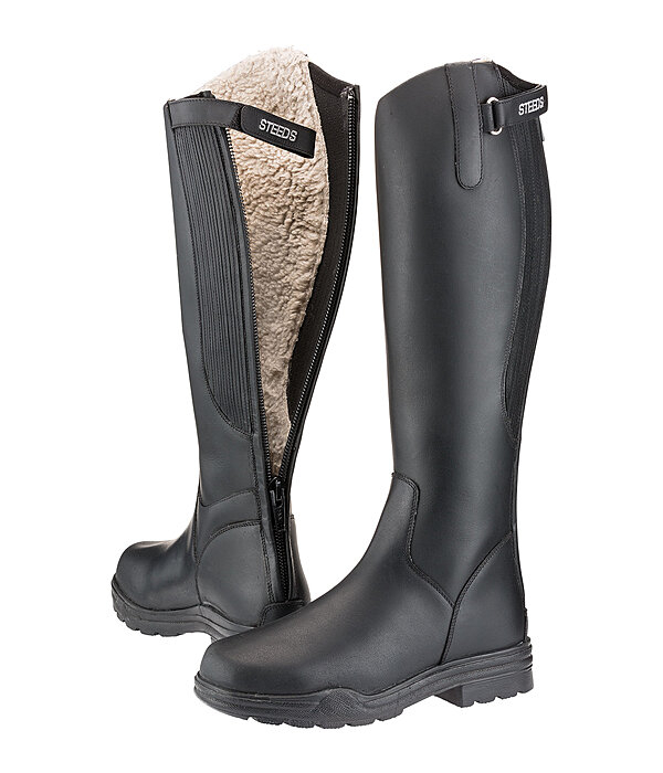 Zimowe buty jeździeckie wykonane z olejowanej natłuszczonej skóry. Wewnętrzna wyściółka wykonana z ocieplającego polaru pluszowego (100% poliester). Elastyczne wstawki, obustronnie osłonięte, wzdłuż zamka błyskawicznego z tyłu, umożliwiają dopasowanie do indywidualnego kształtu łydki. Niezwykle wytrzymały zamek błyskawiczny (YKK nr 10) gwarantuje długą żywotność. Solidna profilowana podeszwa z wygodnym w jeździe obcasem wykonana jest z antypoślizgowej gumy.