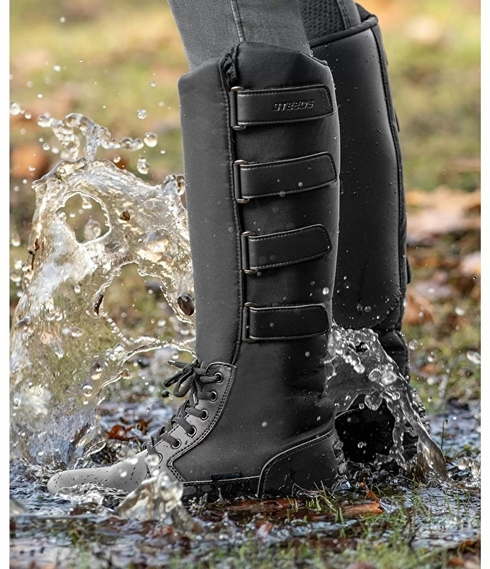 Buty termiczne z wbudowaną izolacją termiczną i nową podszewką z polaru dla jeszcze większego ciepła. Wodoodporna membrana w bucie. Materiał cholewki na wale wykonany z wytrzymałego materiału nylonowego, w obszarze stopy z miękkiego i jednocześnie sprężystego PU. Wzmocnienie łydki po wewnętrznej stronie dla najlepszego trzymania w siodle. Optymalne dopasowanie dzięki sznurowaniu z przodu, czterem rzepom na cholewce. Gumowa podeszwa wykonana z gumy North zapewnia najlepszą przyczepność w strzemionach i na oblodzonych powierzchniach. Uchwyt ostrogi i zintegrowany reflektor.
