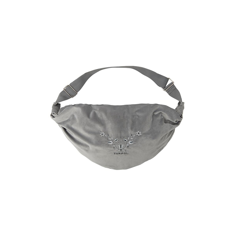 Wykonana z miękkiej, pluszowej tkaniny typu Velvet z delikatnym połyskiem. Zapinana dekoracyjnym zamkiem, z paskiem, który można swobodnie regulować. Wewnątrz miękka tkanina z funkcjonalnymi kieszonkami.