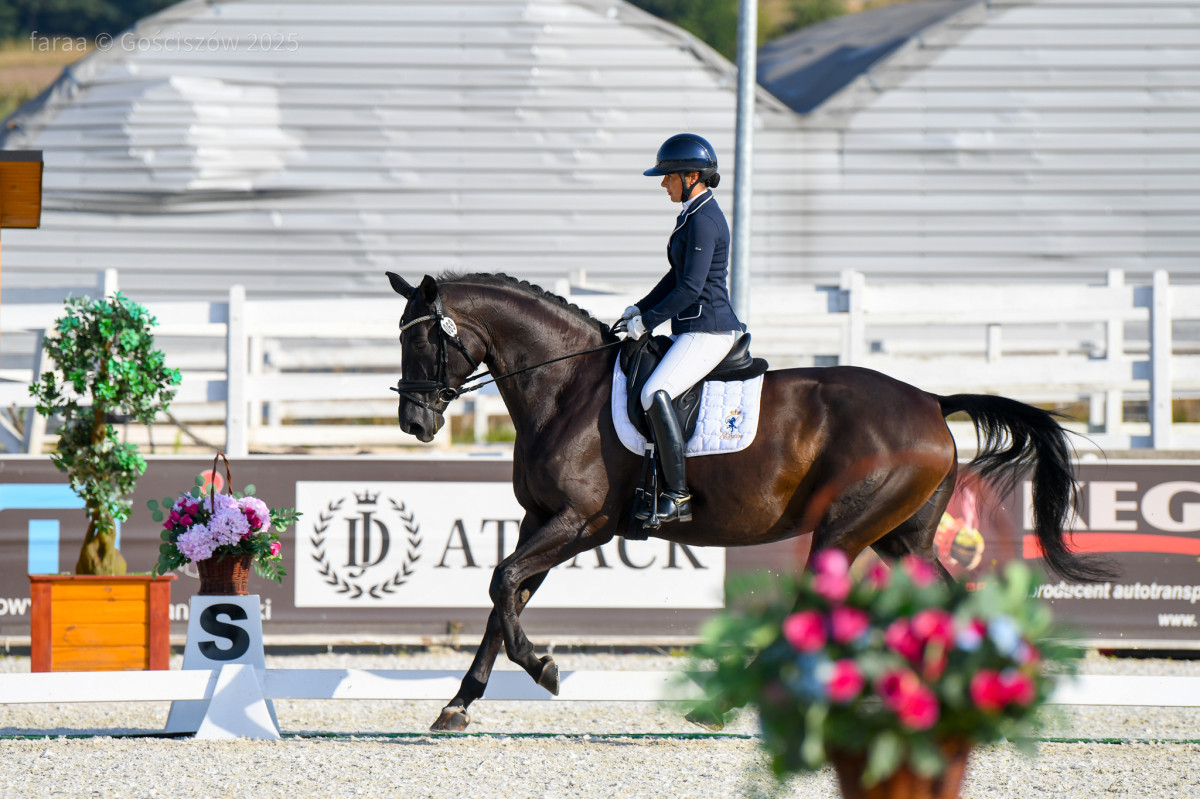 Piękna kara klacz ujeżdżeniowa o doskonałym rodowodzie. Świetny aktywny stęp, lekki kłus i galop "pod górę". Wyszkolona do klasy N-C. Kompaktowy koń z łatwością do zebrania. Klacz jest spokojna, łatwa w prowadzeniu, towarzyska. Nadaje się dla amatora, nie ma zachowań typowych dla klaczy, padokowana w stadzie. W treningu ujeżdżeniowym od dwóch lat, prosto od hodowcy. Koń sprawdzony na zawodach, wygrywała wielokrotnie w klasie P i N na 68-70% w Gościszowie, Białym Lesie, Strzegomiu i Partynicach.
