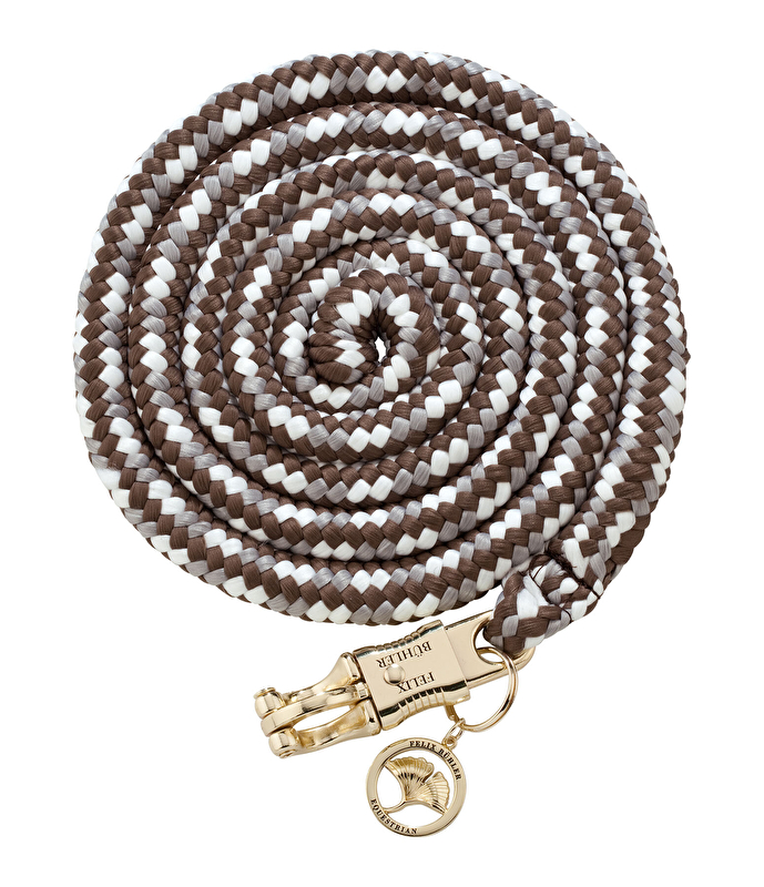 Uwiąz z karabińczykiem antypanicznym w kolorze złotym. Trzy kolory: biel, szary, brązowy. W komplecie z uwiązem brelok z kolekcji Hope. Rozmiar: 2,1 m. Materiał: 100% poliester.