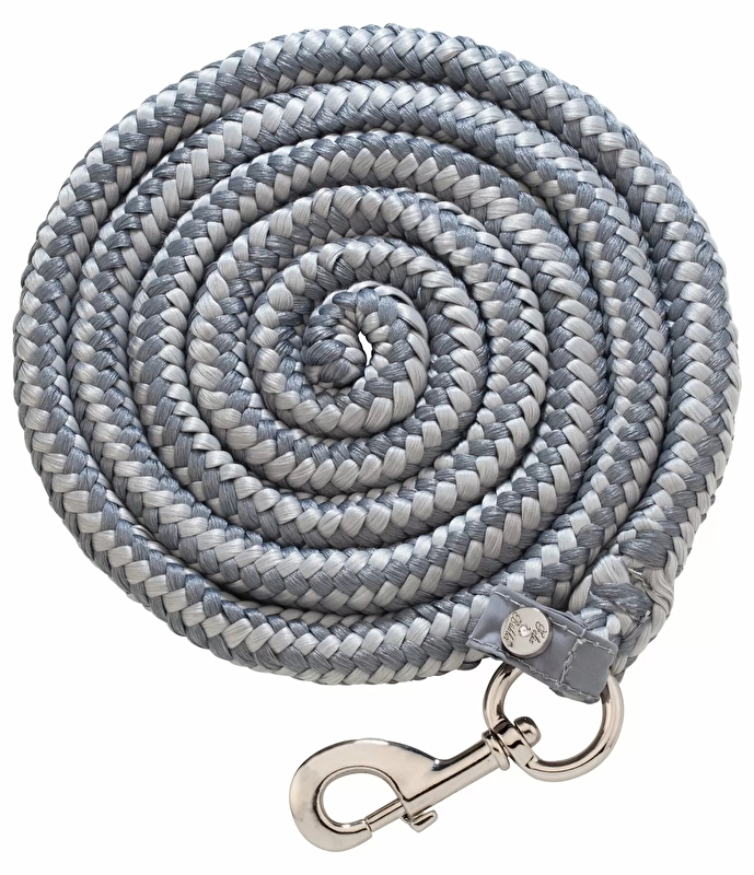 Uwiąz marki Felix Buhler ze zwykłym karabińczykiem w kolorze srebrnym. Uwiąz w odcieniach szarości. Kolekcja Ruffles & Diamonds. Rozmiar: 2,1 m. Materiał: 100% poliester.