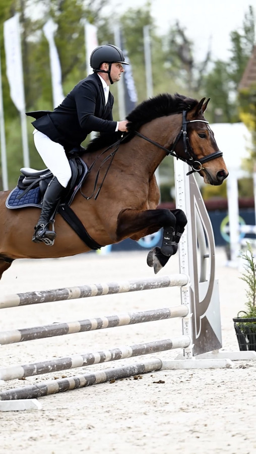 Sprzedam 8 letniego wałacha Amazing VS, ok 155cm w kłębie, mocnej budowy. Ciekawe pochodzenie od klaczy Armina Borderi (kuc connemara) po ogierze Obelisk (zwycięzca konkursów Grand Prix w Belgii). Amazing jest u nas 2 lata. W tym czasie nie chorował ani nie był kontuzjowany. Pracuje w szkółce sportowej na treningach indywidualnych. Swobodnie porusza się w trzech chodach, wykonuje ustępowania, łopatki, trawersy, renwersy, ciągi, zwroty na przodzie, zadzie, cofanie, zagalopowania ze stępa. Ma wygodne chody. Naskakany do 80cm z możliwościami na więcej. Po pierwszych startach (80cm). Sprawdzi się dla ambitnego, pewnego siebie jeźdźca, który wykorzysta jego potencjał.