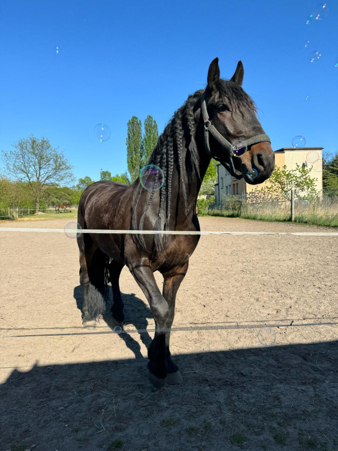 Ujeżdżony w podstawowych chodach,chodzi w tereny.Nie płoszy się,nie bryka i nie ponosi.Miły w obejściu.