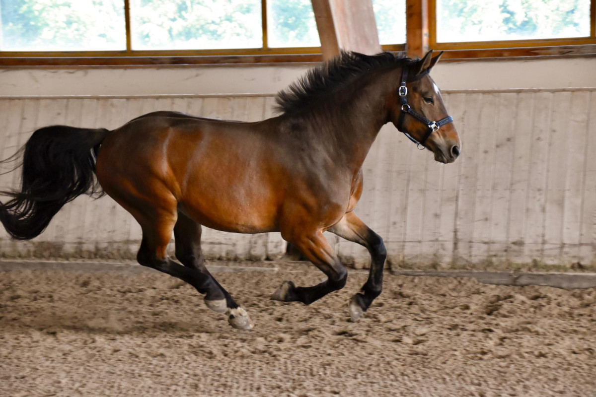 Koń stoi w stajni Gostar Jelenia Góra (do dyspozycji hala, plac zewnętrzny, 2 myjki, solarium), bez możliwości przeniesienia.