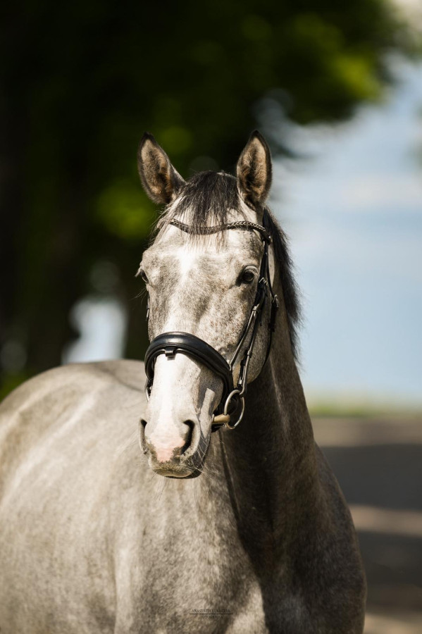 Duży siwy wałach, o bardzo poprawnym ruchu. Łatwy, wygodny i prosty do jazdy. Miły i grzeczny w obejściu.