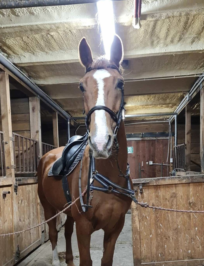Chodzi na luźne spacery w ręku oraz na stęp pod siodłem. Idealny koń do delikatnych jazd rekreacyjnych lub jako koń towarzysz. Ze względu na wiek dajemy mu już więcej odpoczynku, ale nie ma przeciwwskazań do lekkiej pracy.
