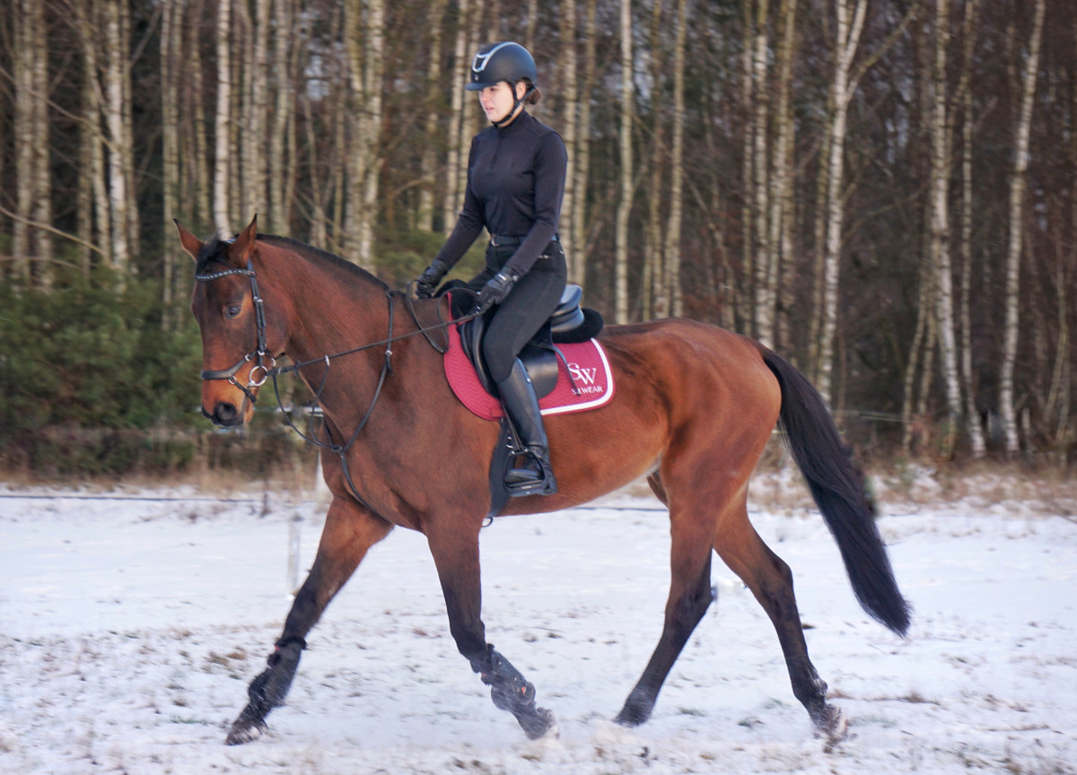 Na sprzedaż wałach z rocznika 2017 o imieniu Lotos. Ma 176 cm wzrostu, smuklejszej budowy. Regularnie werkowany (przy kowalu wymaga dużo spokoju i cierpliwości), odrobaczany. Pod stałą opieką fizjoterapeuty, lekarza weterynarii (co pół roku robione zęby). Stoi wolnowybiegowo ze stadem. Ujeżdżony na poziomie P klasy, starty w P klasie, w domu naskakany do 120cm. Skacze również crossowe przeszkody . Na tą chwilę w lekkim treningu ze względu na brak hali.