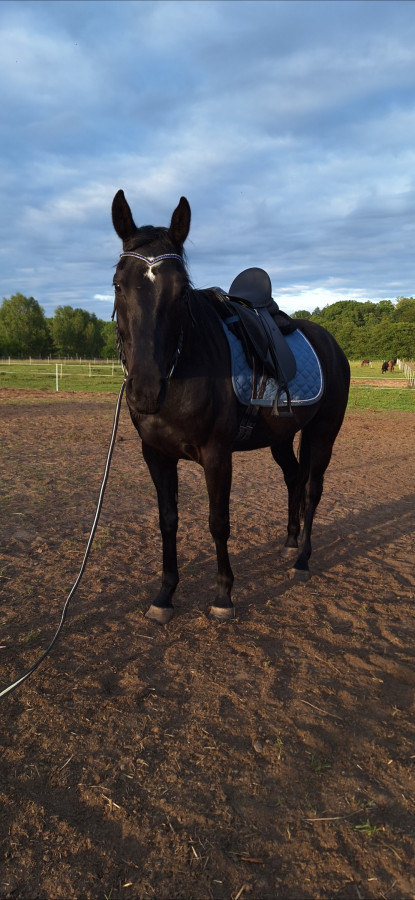 Sprzedam z całym sprzętem ( siodło, ogłowie, 2 derki, czaprak+nauszniki, ochraniacze w tym też i transportowe, halter, kantar możliwe że jest coś jeszcze co przoczyłam)