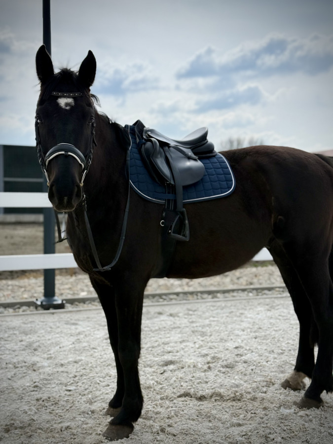 Nowego domu szuka sześcioletni wałach rasy wielkopolskiej o wzroście około 161cm. Jest to koń o spokojnej głowie, bezpieczny, jak nie pracuje regularnie to nadal można wsiąść i bez obaw pojeździć. Obsługiwany zarówno przez dzieci jak i przez dorosłych, poradzi sobie na nim osoba początkująca, ucząca się jak i zaawansowana. W treningu wszechstronnym - naskakany do metra pod jeźdźcem, w korytarzu do 120cm, potrafi ustępowania, zna kontakt, chodzenie w ustawieniu jak i na długiej szyi. Trenowany zarówno na wędzidle jak i na ogłowiu bezwedzidlowym (zarówno na płasko jak i skoki). Chodzi w tereny sam, z innymi końmi, bez różnicy czy na czele czy w zastępie. Regularnie szczepiony, odrobaczany, kopyta werkowane co 6-7 tygodni, zeby robione co 8 miesięcy. Był również na zawodach skokowych 80cm - przejechane na czysto, blisko normy czasu. Nie kaszle, nie ma żadnych oznak wrzodów, stoi wolnowybiegowo (ale boks zna i stoi w nim grzecznie) ze stałym dostępem do siana, dostaje paszę z witaminami i olejami. Ma sarkoida na brzuchu typu płaskiego - skonsultowany z weterynarzem, nie ma potrzeby wycinania oraz na ten moment ma asymetrię mięśni zadu konsultowaną z osteopatą p. Andrzejem Czakiem - do wyrównania przy regularnej symetrycznej pracy zwłaszcza na drążkach i w terenie po górkach, ponieważ guzy biodrowe są na równej wysokości. Do obejrzenia w Strzelcach Opolskich, możliwe wykonanie badania TUV - miał robione zdjęcia przez poprzednią właścicielkę w wieku ponad dwóch lat, wyszły czyste.