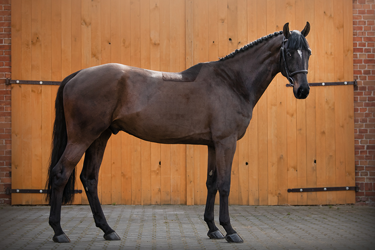 Idealny koń do startów i doskonalenia techniki jazdy. Bardzo jezdny, zmieniający nogi, bardzo dobrze reagujący na pomoce. Chętnie skacze, ratujący. Dobrze współpracuje z jeźdźcem. 172cm, 7 lat.
