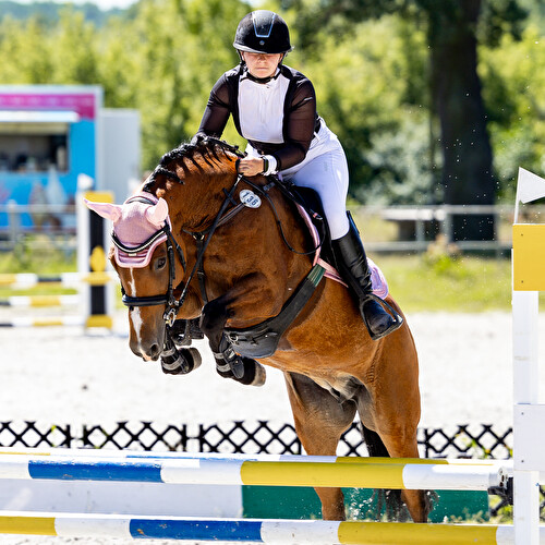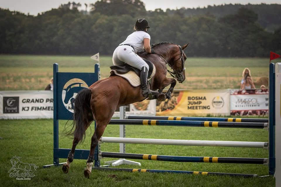 Możliwe wyjazdy na zawody, Azalia lubi skakać i robi to bardzo dobrze. Wcześniej skakała bezproblemowo parkury do 110cm z możliwościami na więcej w domu. Na zawodach najwięcej L, w korytarzu 130cm skoczyła praktycznie z kłusa