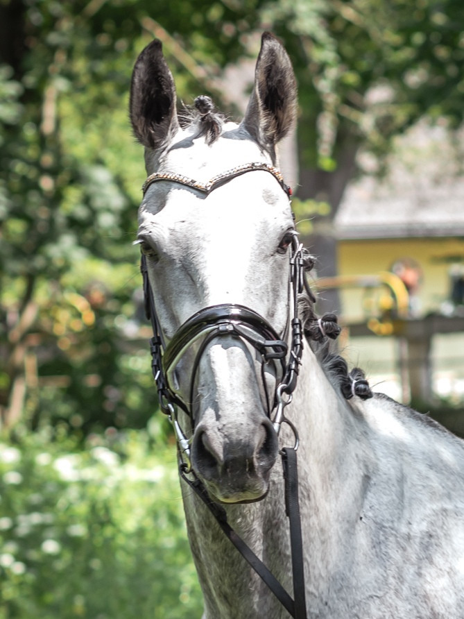 Siwcia potrzebuje osoby troszeczkę bardziej zaawansowanej, musi poruszać się w trzech chodach w dość dobrej równowadze. Jest bardzo łatwa w prowadzeniu, nie bryka ale nie zniesie wieszania się na pysku czy kopania niestabilną łydką.