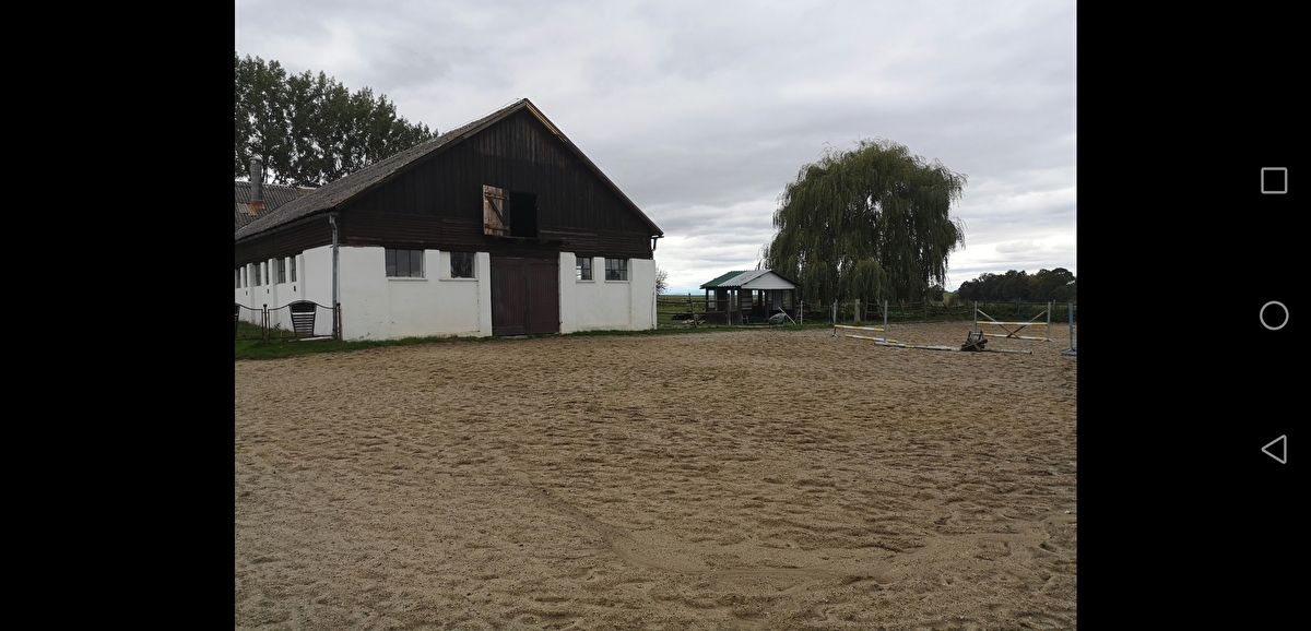 Stajnia na 11 koni, z możliwością dostawienia kolejnych boksów w pozostałej części budynku, myjka z ciepłą wodą, stanowisko do czyszczenia koni, siodlarnia i pomieszczenia socjalne. Obszerny strych pozwala na magazynowanie całorocznych zapasów siana i słomy. Silos na owies. Maneż piaszczysty do jazdy konnej. Wysokiej jakości ziemia pozwala na utrzymanie pastwisk z trawą przez cały sezon. Budynek magazynowy, w którym można a przygotować kryty lonżownik.