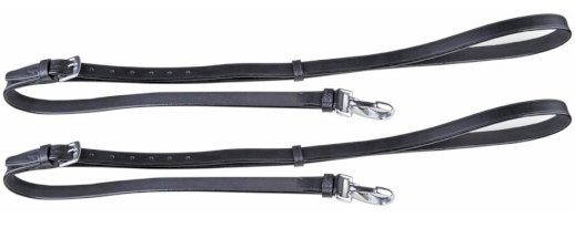 Wypinacze skórzane z firmy Showmaster. Wypinacze bez wstawki elastycznej wykonane z wysokiej jakości skóry. Zakończone wygodnymi karabińczykami w kolorze srebrnym.