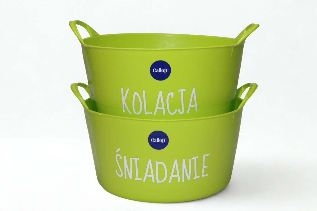 Zestaw dwóch elastycznych wiader z napisami ŚNIADANIE i KOLACJA to funkcjonalny i elegancki sposób na uporządkowanie karmienia w stajennym harmonogramie. Dzięki nim każdy koń wie, kiedy czas na jedzenie – a Ty zyskujesz więcej porządku i lepszy nastrój na co dzień.
