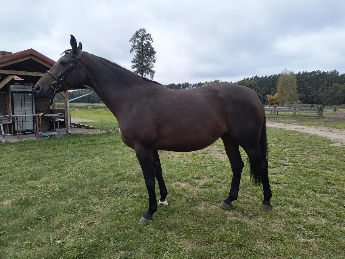6 letnia klacz, wiosną ubiegłego roku zaczęła pracę pod siodłem, chętna do skakania, skupiona na przeszkodach. Obecnie odstawiona od pracy pod siodłem ze względu na wysoką ciążę. Termin wyźrebienia druga połowa marca. Przyzwyczajona do zabiegów pielęgnacyjnych, regularnie werkowana. W 2024 roku urodziła zdrowego źrebaka. Wzrost 164 cm. Zdjęcie ogiera którym jest zaźrebiona znajdą Państwo w galerii.